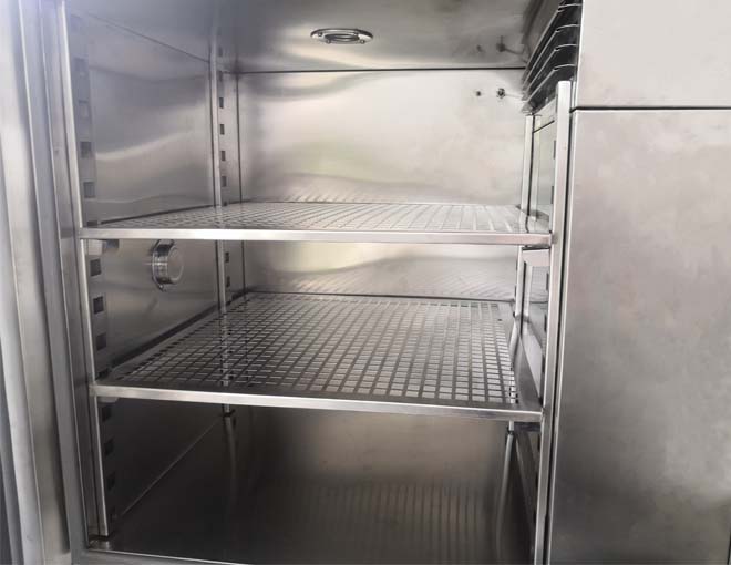 7、外殼冷軋鋼板制造表面采用先進噴涂工藝,內膽優質304不銹鋼四角半圓弧設計易清潔,箱內擱板間距可調。